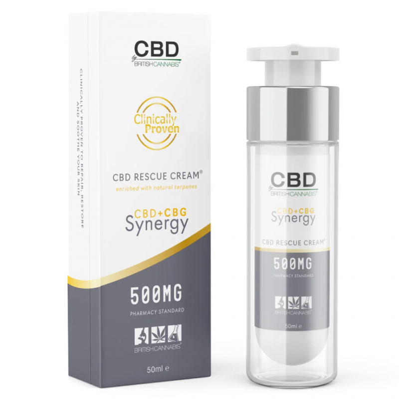 With our new Synergy topical lotion, we’ve upgraded our original clinically proven CBD RESCUE CREAM® formula with an additional cannabinoid, cannabigerol (CBG). The union of these two dynamic cannabis compounds deliver a myriad of skincare benefits. One pump delivers approximately 1mg of CBD + 1.2mg of CBG