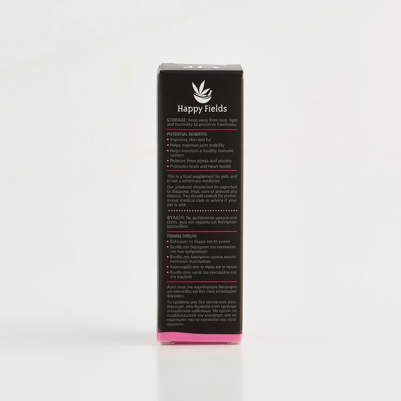 Like all Happy Fields products, CBD oil for pets follows strict safety standards, is ISO certified and independently tested to ensure its high quality. CBD oil is rich in terpenes and cannabinoids, pure and 100% natural, with hemp grown on Greek soil.