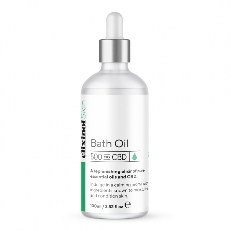 ElixinolSkin CBD Bath Oil 500mg, 100ml Our carefully crafted blend of skin-loving CBD Bath Oil ingredients works in harmony to condition and nourish your skin while enveloping you in a calming aroma that will transport you to a place of pure bliss. Infused with the enchanted properties of CBD and the calming scent of frankincense, this elixir will leave you feeling relaxed and rejuvenated, ready to take on the world.