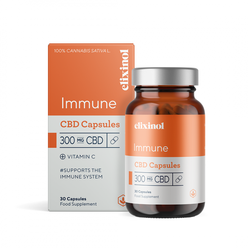 Elixinol Immune CBD Capsules contain a premium blend of CBD, 100% hemp extract and Vitamin C. to help boost your immune system. Enjoy a precise, slow release dose of CBD, with vitamins and minerals selected for specific purposes.