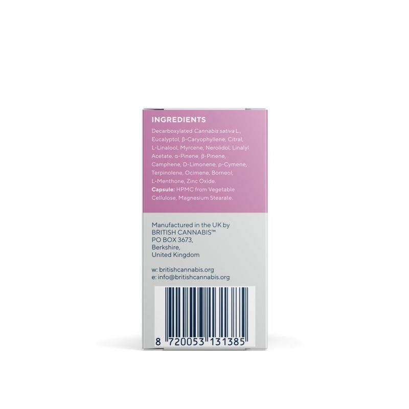 Ingredients:Decarboxylated Cannabis sativa L., Eucalyptol, β-Caryophyllene, Citral, L-Linalool, Myrcene, Nerolidol, Linalyl Acetate, α-Pinene, β-Pinene, Camphene, D-Limonene, ρ-Cymene, Terpinolene, Ocimene, Borneol, L-Menthone, Zinc Oxide.