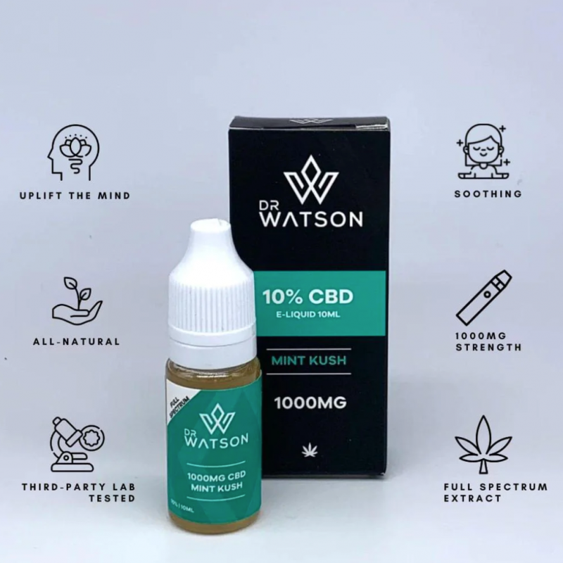 Introducing our Mint Kush E-liquid. A natural cooling mint flavour added to 10% of full spectrum CBD extract for a highly effective experience. Great for a refreshing taste with a little kick.