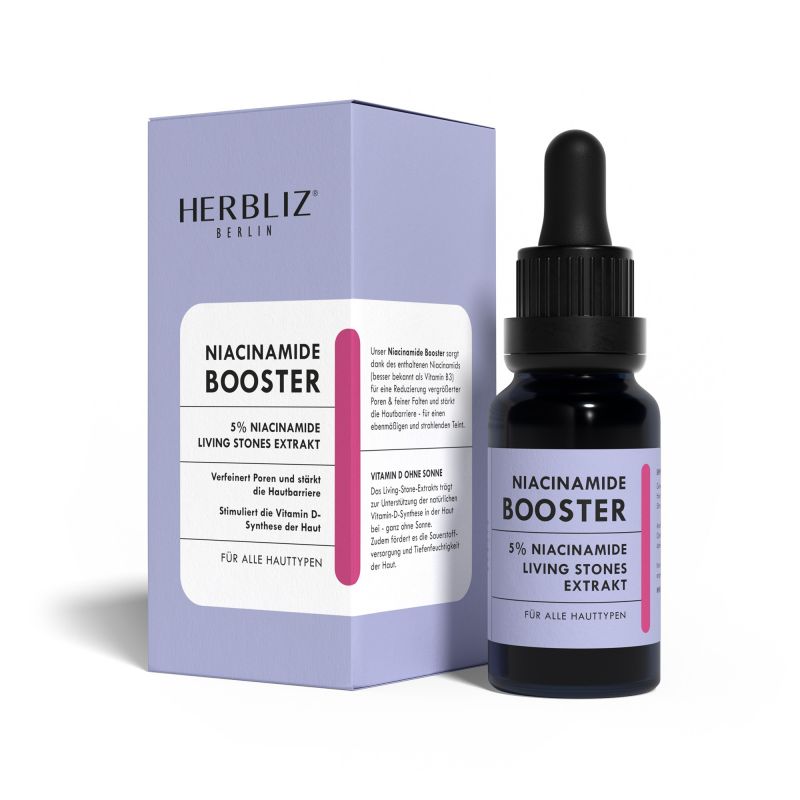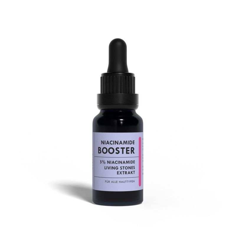 Our Niacinamide Booster gives your skin a radiant and even complexion. The contained "Living Stone Extract" supports the vitamin D synthesis of the skin and at the same time promotes the oxygen supply as well as the deep hydration of the skin. Thanks to its namesake: Niacinamide (vitamin B3), enlarged pores and fine wrinkles don't stand a chance, and the skin barrier is strengthened.