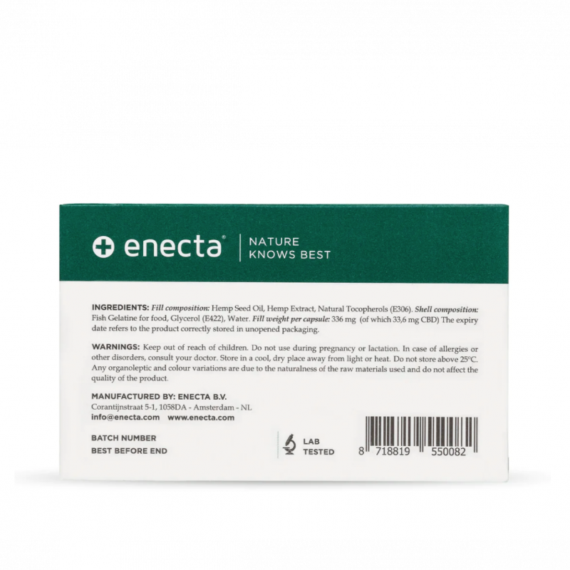 Enecta capsules are the ideal choice if you are looking for a safe, effective, and practical CBD product to take with you and use freely, at any time of the day.