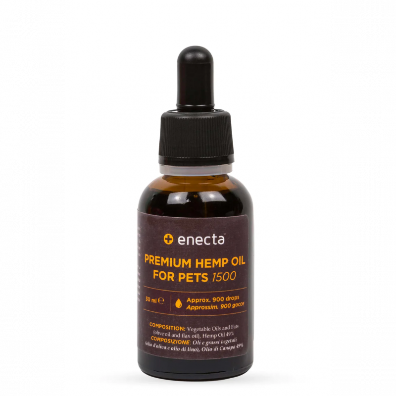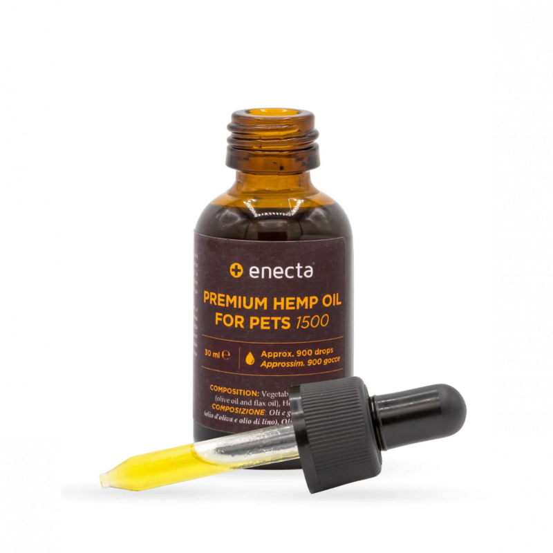 The Premium Hemp oil for pets Enecta, is produced from a type of Cannabis Sativa L. plant, rich in Phytocannabinoids, and with a THC percentage close to zero (equal or less than 0.2%, as per CE legislation n. 1782/2003) It’s a certificated Cannabis type and it’s cultivated in Italy on selected fields, chosen as per Guidelines on Good Agricultural and Collection Practice (GACP), without pesticides or herbicides, maintaining the highest standards of safety and quality.
