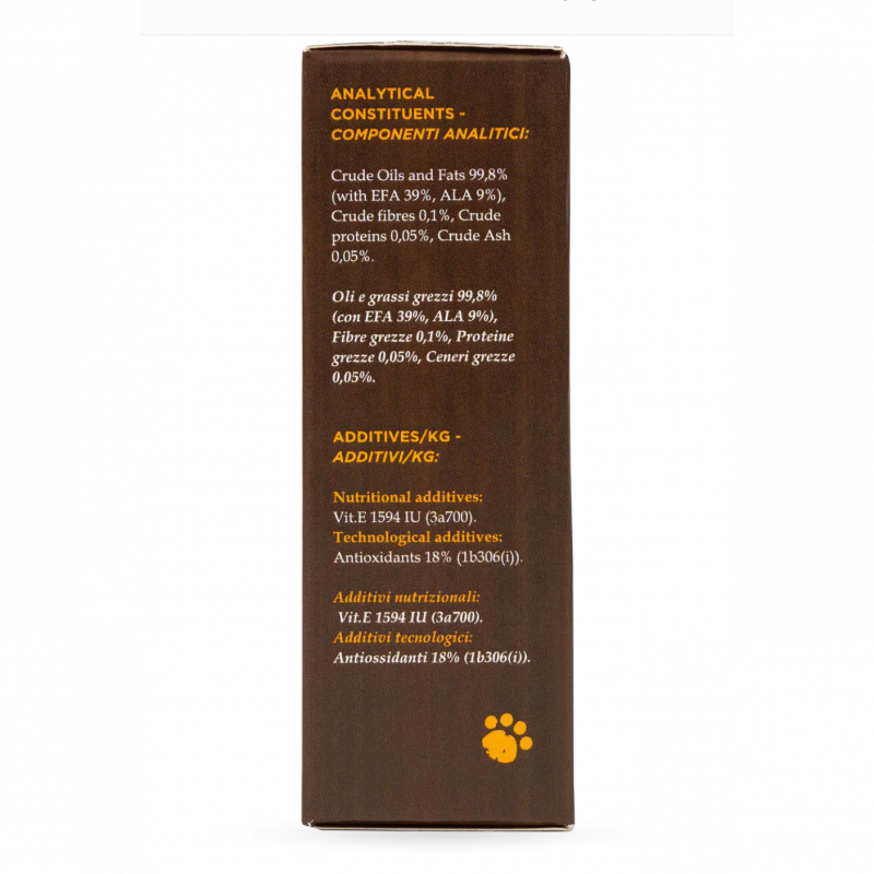 The Premium Hemp Oil for pets is a supplement with Omega-3 and Omega-6 fatty acids (specifically made for pets); it helps maintaining a shiny coat, keeping a healthy skin and a healthy cardiovascular system. Thanks to the Vitamin E, it protects from free radicals and it strengthens the immune system.