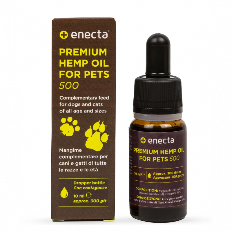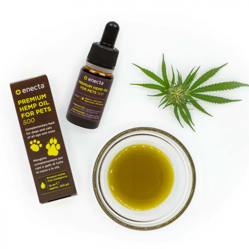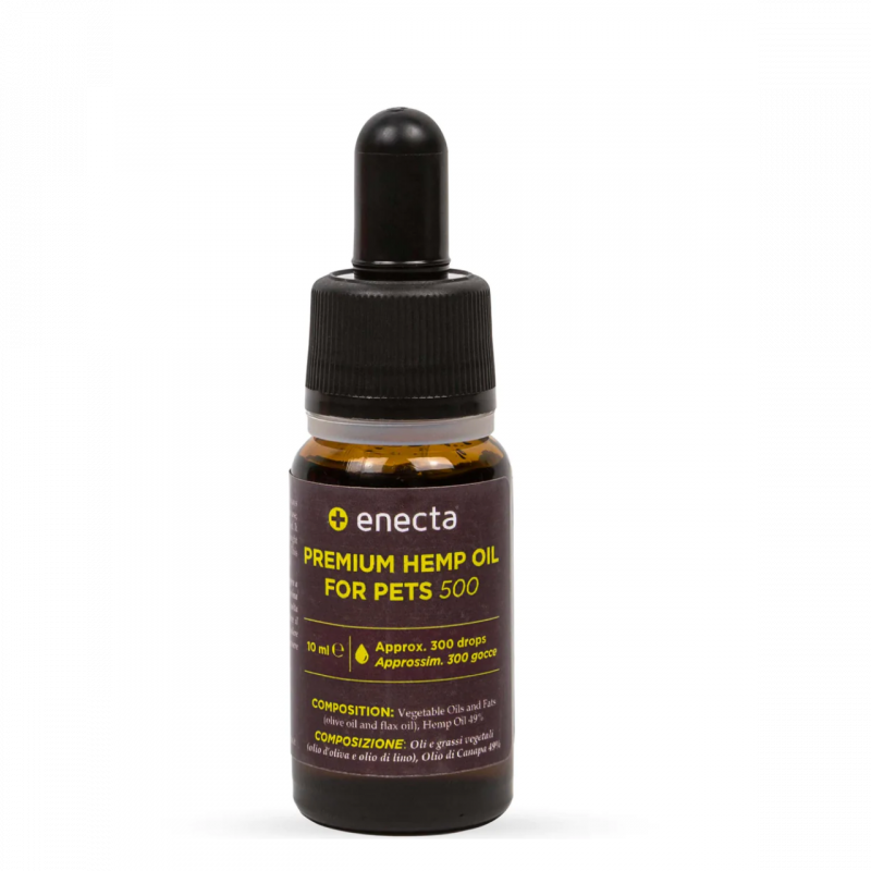 The Premium Hemp oil for pets Enecta, is produced from a type of Cannabis Sativa L. plant, rich in Phytocannabinoids, and with a THC percentage close to zero (equal or less than 0.2%, as per CE legislation n. 1782/2003) It’s a certificated Cannabis type and it’s cultivated in Italy on selected fields, chosen as per Guidelines on Good Agricultural and Collection Practice (GACP), without pesticides or herbicides, maintaining the highest standards of safety and quality.