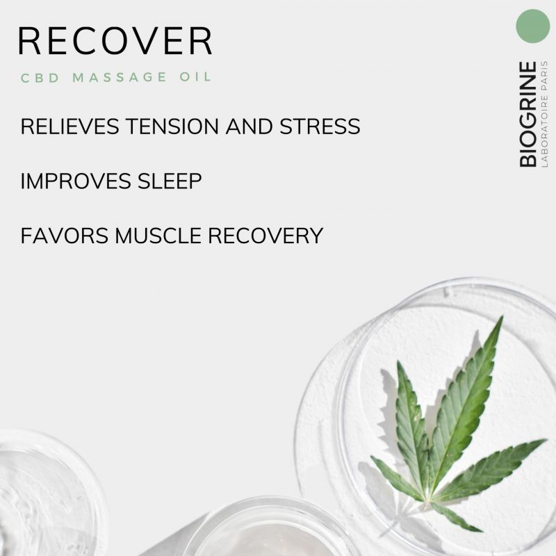 Give yourself a gentle break from the daily grind with a sumptuous CBD and bergamot/lemonberry "Recover" oil massage. This pleasant body synergy combines the benefits delivered by bergamot oil, vitamin E and hemp oil for a recuperative and hydrating massage.