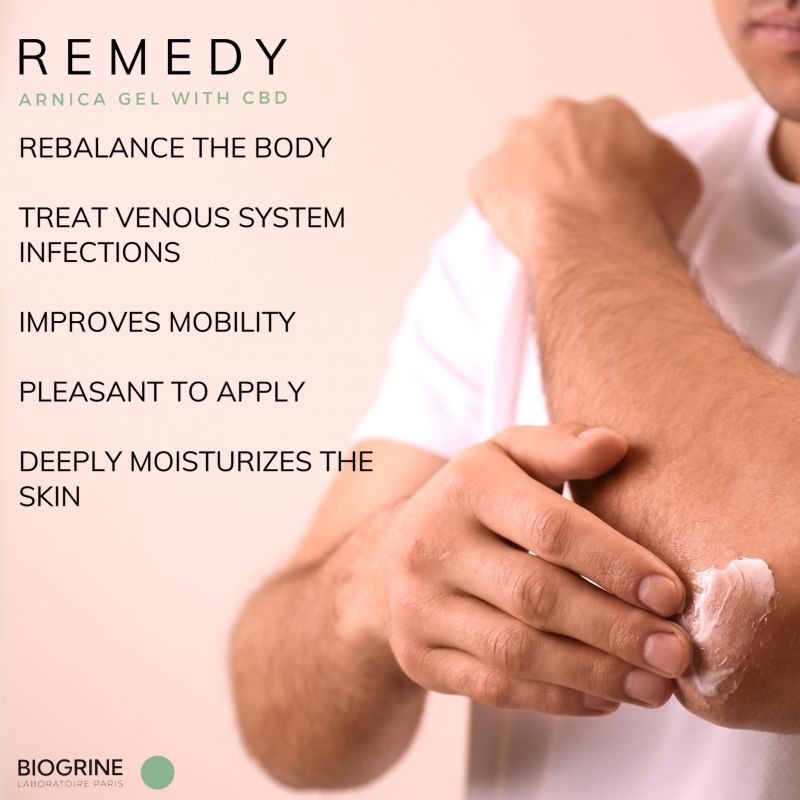 "Remedy" arnica gel with CBD, cloves and cypress is an excellent anti-inflammatory that relaxes and soothes the muscle so that the body remains in balance.