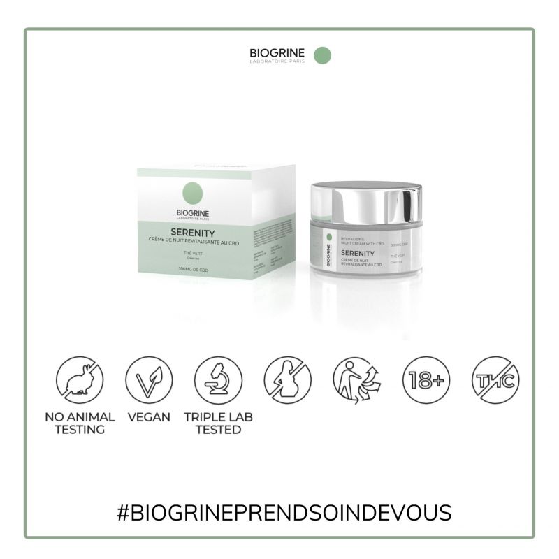 "SERENITY" CBD Revitalizing Night Cream | green tea | 300mg CBD 50ml
