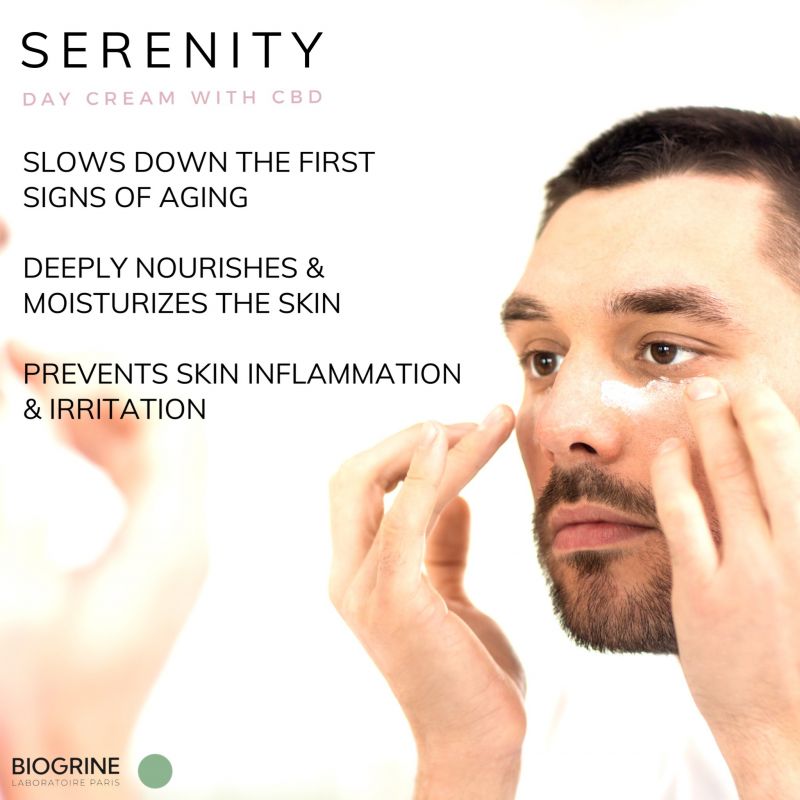 Soothing, relaxing and anti-wrinkle, the CBD day cream from our "Serenity" range is the new beauty routine for a soft, moisturized and intensely cared-for face.