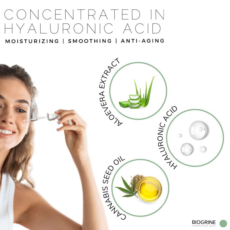 Product indication : Concentrated in Hyaluronic Acid, Moisturizing, Smoothing and Anti-ageing face care.