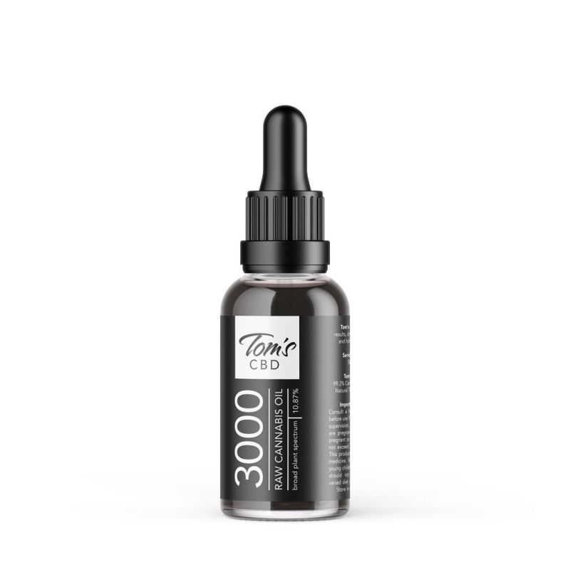 Tom's CBD Oil, RAW, 3,000mg, 30ml Broad Spectrum